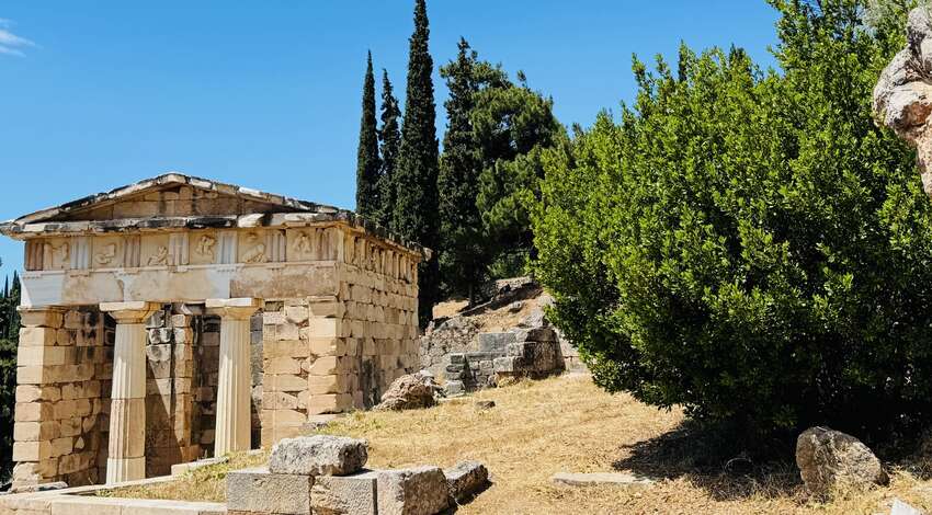 After another delicious local lunch, we have a chance to stroll through the charming mountain town of Delphi, etched into the side of the mountain. Every cafe has a patio with jaw-dropping views from the cliffs all the way down to the sea.