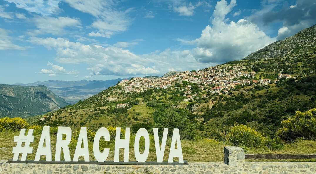 Welcome sign to Arachova.