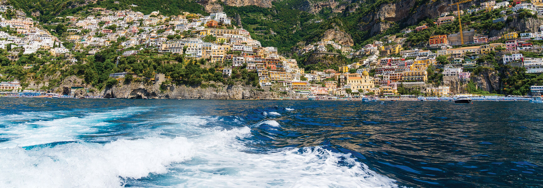 We check out and drive by bus along the Amalfi Coast to Minori, following a scenic, narrow road cut into the cliffs above the sea. En route, we stop in Positano, known for white and pastel houses stacked on the rock face. Founded in the Roman era, Positano later served as a maritime trading hub, declined in the 19th century, and revived in the mid-20th century as a premier seaside destination. You'll have time to explore independently. We then board a private boat to Amalfi for coastal views of terraced houses and gardens. The bus continues to Amalfi and meets us after the boat ride. Note: Please be aware that encountering crowded conditions while walking through town is possible. Also, please note that the boat operates only when the weather suits safe navigation.